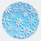Hermosos copos de nieve blancos sobre un fondo de olas azules.