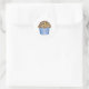Pegatinas presentan un original ilustracion de marca de un muffin de arándano fresco sobre un fondo azul. ¡Un delicioso desayuno!