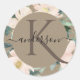 PEGATINA REDONDA BLUSH ÁUREO RÚSTICO MONOGRAMA DE FLORAL DE ACUAREL