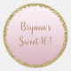 Pegatina Redonda Blush Rosa Bañado Oro Brillo Glam Brillante Fiesta