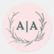 Pegatina Redonda Blush & Slate Gray Subtle Floral Monogram