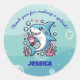 Pegatina Redonda Boba Shark Cute Kawaii Rosa Gracias