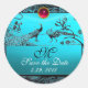 Pegatina Redonda BODA AMOR AVES MONOGRAM azul rojo negro