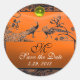 Pegatina Redonda BODA AMOR AVES MONOGRAM naranja rojo blanco negro