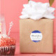 Boda Azul Pintado Gracias Pegatina Redondo Clásico. Personalizable de texto negro y gris sobre blanco. Bordes adornados con extractos impresos de obras originales de arte fino, Resumen en azul, pintado en aceites con pincel y cuchillo por artista vivo. Las obras de arte están decoradas en tonos blancos, azules, navales, ultramarinos, violetas y malvas. Personalice con los nombres de la novia y del novio y la fecha del boda, puede ajustar el texto y los colores de la muestra como desee. Excelente para las etiquetas y sellos para sobres más atractivos. Visita nuestra tienda, Austen & Grace, para ver la suite boda completa, productos a juego y más, y por favor contáctanos si necesitas ayuda contact@austenandgrace.com
