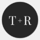 Pegatina Redonda Boda blanco y negro monogramado simple