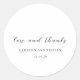 Etiquetas de bodas modernas con un diseño sencillo con fuentes de escritura serif clásicas y elegantes. El diseño incluye "amor y agradecimiento" y sus nombres y fecha de boda.