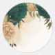 Pegatina Redonda Boda botánico de oro beige verde esmeralda
