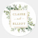 Pegatina Redonda Boda Botánico de Oro Verde