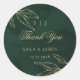 Pegatina Redonda Boda botánico Green Gold Emerald