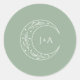 Selle su tema místico con el Pegatina del Boda botánico místico. Con un fondo verde sabio y limpio, la luna creciente, las estrellas y las hojas, complementadas con las originales iniciales de personalizable de la pareja, se convierten en un emblema encantador.