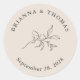 Sencillo y elegante con un atractivo minimalista, este pegatina de novios tiene un fondo beige otoñal con un elegante texto gris carbón. La plantilla de texto incluye los nombres de Bride y Groom y su fecha de boda. Una simple rama de hojas botánicas añade un elemento floral en el centro del diseño. Este pegatina es una buena opción para los favores matrimoniales, como sellos para sobres, o para adjuntar a otros artículos en su boda, ducha de novia, fiesta de compromiso y más.