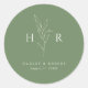 Pegatina Redonda Boda botánico simple verde mínimo monograma
