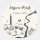 Pegatina Redonda Boda Caprichosa Dibujada a Mano