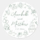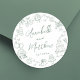 Pegatinas personalizadas de Bodas Verdes de Salto Quirky. Estos alegres y divertidos stickers de bodas redondas presentan extravagantes ilustraciones de doodle alrededor de los bordes, todo ello en un suave tema verde sabio. Elementos como una torre de champán, pastel de boda, bola de discoteca, corazones, campanas bodas, anillos, cámaras y más crean una vibración caprichosa y festiva. Los nombres de la novia y del novio y la fecha del boda se muestran en el centro con elegancia en una mezcla de escritura manuscrita y tipos de letra simples, añadiendo un toque elegante y personalizado. Personalizable completo, este diseño le permite ajustar el texto y la disposición para que se ajuste a su tema boda. Perfecto para sellar sobres, decorar favores o agregar un encantador acento personal a su papelería boda, estos pegatinas le aportan elegancia y sofisticación lúdica a su celebración.