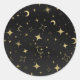 Pegatina Redonda Boda Celestial de Luna y Estrellas Negro y Dorado
