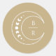 Selle su tema celeste con el "Pegatina redondo de Boda celestial de las Iniciales del Monograma Dorado". Contra un fondo blanco limpio, la luna de oro y las estrellas, complementadas con las elegantes y sencillas iniciales de personalizable de la pareja, se convierten en un emblema encantador. Las fases de la luna delicadamente incorporadas añaden una capa de simbolismo, haciendo que estos pegatinas sean más que simples focas decorativas.