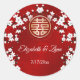 Pegatina Redonda Boda Chino Rojo con flores de cerezo blanco