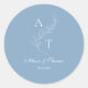 Pegatina Redonda Boda clásico de hoja monográfica sobre azul turbio