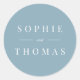 Este pegatina boda presenta los nombres de la pareja boda en blanco con un color de fondo editable; para cambiarlo de azul polvoriento a un color de su elección, haga clic en el botón personalizar. Personalízalo reemplazando el texto del marcador de posición. Para obtener más opciones como cambiar el tipo de letra, su tamaño y espaciado entre letras haga clic en el botón "Personalizar". *Tenga en cuenta que la marca de agua Zazzle que aparece en la vista previa del zoom NO aparecerá en el producto impreso final. © Rosewood y Citrus