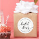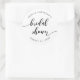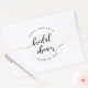 Pegatina para despedida de soltera con las palabras "Bridal Shower" en una escritura cursiva relajada en negro sobre un fondo blanco.