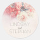 Pegatina Redonda Boda de acuarela de Rubor y rosas rosadas