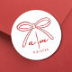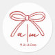 Pegatina Redondo Clásico Monograma Boda De Color Rojo De Mano. Pegatinas de casamiento redondo minimalistas. Estas pegatinas de boda redondas, bonitas y sencillas, son el toque perfecto para sellar sobres, decorar favores o añadir un elemento personalizado a los detalles de tu boda. En el centro, una proa dibujada a mano está emparejada con las iniciales de la novia y el novio y la fecha del boda, lo que crea un diseño atemporal y subestimado. Con un estilo clásico de paleta roja y blanca, el diseño evoca la estética italiana, francesa y europea para crear un ambiente elegante. Con una mezcla de escritura manuscrita y un tipo de letra simple y limpio, estos pegatinas son elegantes pero accesibles. Personalizable completo, puede ajustar el texto y la disposición para que se adapte a su tema boda. Perfecto para bodas, cenas de ensayo o duchas de novias, estos pegatinas son un complemento versátil y encantador para su celebración.