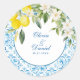 Pegatina Redonda Boda de azulejos azules y lémones mediterráneos