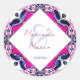 Pegatina Redonda Boda de azulejos rosa y azul mexicano