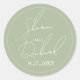 Pegatina Redonda Boda de caligrafía del guión verde sabio caprichos