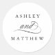 Sencillo pegatina boda blanco y negro con elegantes y románticas letras de caligrafía rápida con sus nombres. Para una personalización más avanzada de este diseño, haga clic en el BOTÓN HERRAMIENTA DE DISEÑO AZUL de arriba.