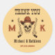 Pegatina Redonda Boda de campo en monograma de cráneo occidental