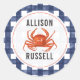 Pegatina Redonda Boda de cangrejo de Gingham azul