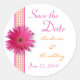 Pegatina Redonda Boda de cinta de plástico rosada Gerbera Daisy Pla