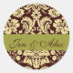 Pegatina Redonda Boda de Damasco de Chocolate Pistachio Bride Groom