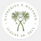 Pegatina Redonda Boda de destino tropical de palmeras nubladas