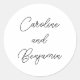 Pegatina Redonda Boda de escritura moderna y elegante Nombres blanc
