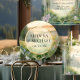 PEGATINAS DE BODA o sellos de sobre. Escena de fantasía Art Nouveau con pinos altos, flores silvestres en un prado y un delicado marco redondo dorado brillante con flores silvestres y follaje para una boda en las montañas. Mágico, etéreo con un portal al amor eterno. Un conjunto completo de productos está disponible para su compra en la colección. MSP0111