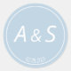 Este pegatina presenta las iniciales de la novia y el novio con fecha de boda sobre un azul bebé dentro de un círculo blanco. Personalice el texto en los campos de plantilla o haga clic en personalizar para seleccionar el estilo de fuente, el tamaño y el color que desee. Ideal para sellar el correo o las bolsas de favores.