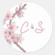 Pegatina Redonda Boda de flores de cerezo acuarela