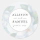 Pegatina Redonda Boda de flores de dogwood blanco plateado personal