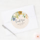 Pegatina Redonda Boda de flores de primavera floral acuarela
