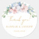 Boda de flores rosadas azules elegantes Pegatina redonda clásica. Introduzca sus datos, puede elegir la fuente, la posición, etc. individualmente mediante "personalizar aún más".