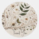 Pegatina Redonda Boda de flores y hojas botánicas de la belleza de