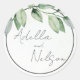 Pegatina de redondeo Boda de hojas verdes blandas diseñado con delicadas hojas verdes y texto de escritura elegante. Este Pegatina de Boda de plantilla es fácil de personalizar. El texto incluye: los primeros nombres de la novia y Groom. Para personalizar simplemente inserte sus detalles en nuestra plantilla sencilla, reemplazando el ejemplo.
