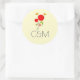 Pegatina Redonda Boda de Ilustracion de flores de corazón rojo