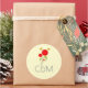 Empaquetadores de bodas con sus primeras iniciales. Diseñado con un encantador dibujo de varias flores rojas brillantes con el corazón gordo unido a un tallo verde. Hay 2 mariposas amarillas cerca. Esbozado con un contorno negro. Diseño atractivo y bonito.