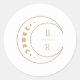 Selle su tema celeste con el "Pegatina redondo clásico de los Bodas de las Iniciales Celestes de Oro". Con un fondo blanco y limpio, la luna y las estrellas de la media luna dorada, complementadas con las originales iniciales de personalizable de la pareja, se convierten en un emblema encantador. Las fases de la luna delicadamente incorporadas añaden una capa de simbolismo, haciendo que estos pegatinas sean más que simples focas decorativas.