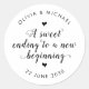 Un clásico Pegatina Boda de Gracias Negro con "Un dulce final a un nuevo comienzo" en una moderna y rústica caligrafía de fuentes. Puede personalizarlo fácilmente con sus nombres y fecha de boda.