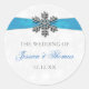 Pegatina Redonda Boda de Invierno Diamante Snowflake & Blue Ribbon